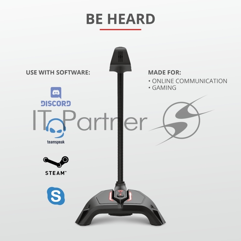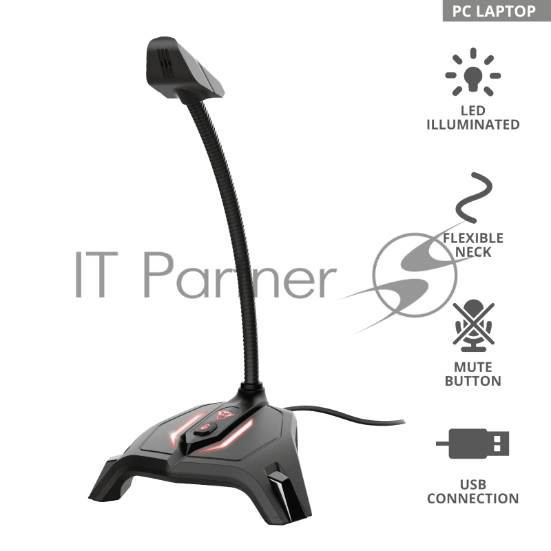 Микрофон Trust Gaming Microphone GXT 215 Zabi, USB, Flexible Neck, PC/PS4/PS5/Xbox One/Xbox Series X, LED-Red, Black [23800]