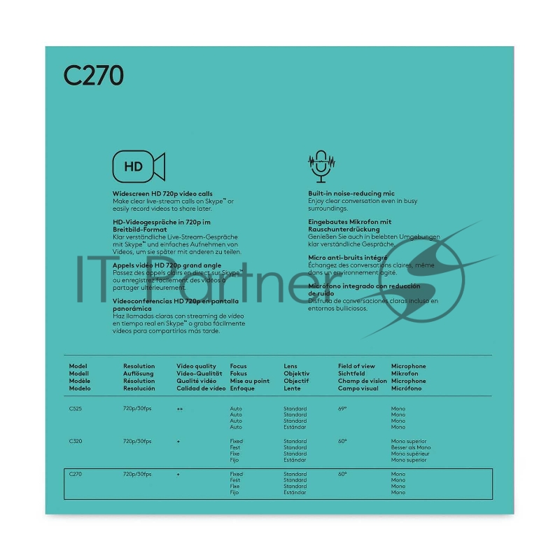Цифровая камера Logitech Webcam HD Pro C270, 3MP, 1280x720, Rtl, [960-000636/960-001063]