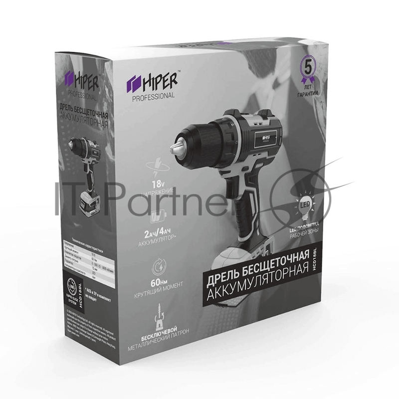 Дрель аккумуляторная бесщеточная PROF HIPER HCD18BL 18 В, 60Нм, БЕЗ АКК.