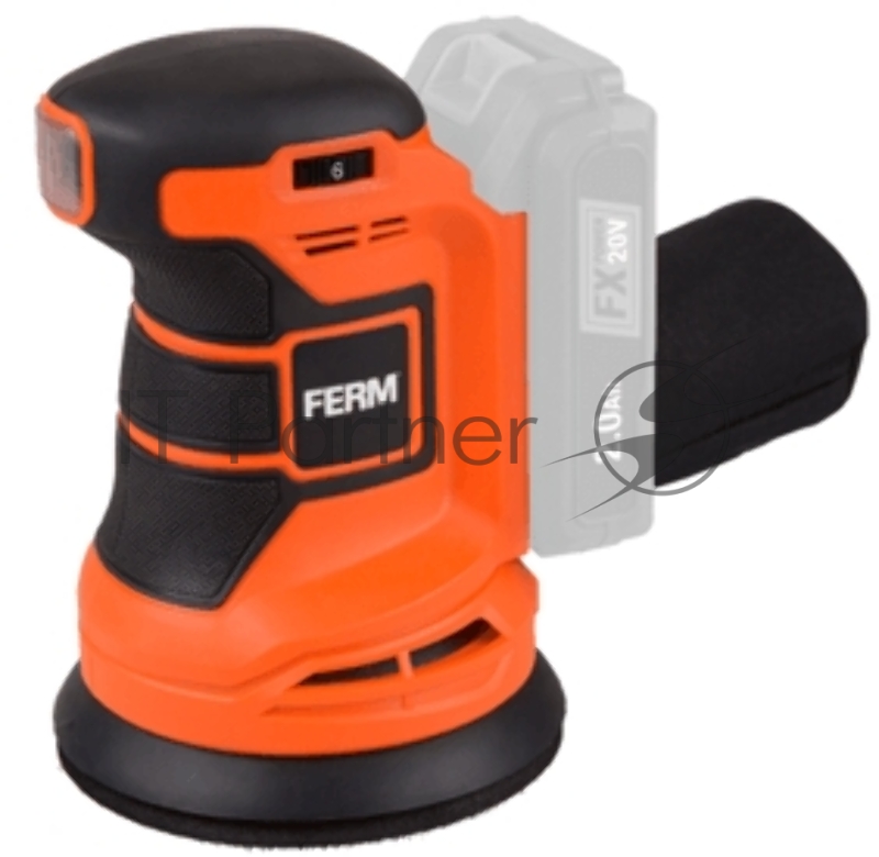 Аккумуляторная орбитальная шлифмашина FERM ESM1014 Li-Ion 20 В Компл. Solo (без акк. и ЗУ), 5000-10000 об.мин., диаметр подошвы 125 мм., регулировка скорости (6 положений), мешок пылесборника 6 шт., набор шлифовальной бумаги (P60 P80 P120)