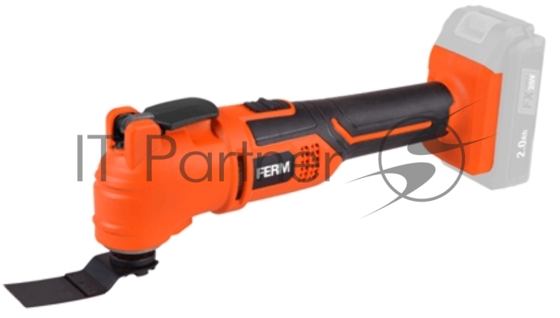 Аккумуляторный многофункциональный инструмент FERM Li-Ion 20 В Компл. Solo (без акк. и ЗУ), 19000 об.мин., угол колебания 3 градуса, быстрая смена оснастки, адаптер пылесоса.