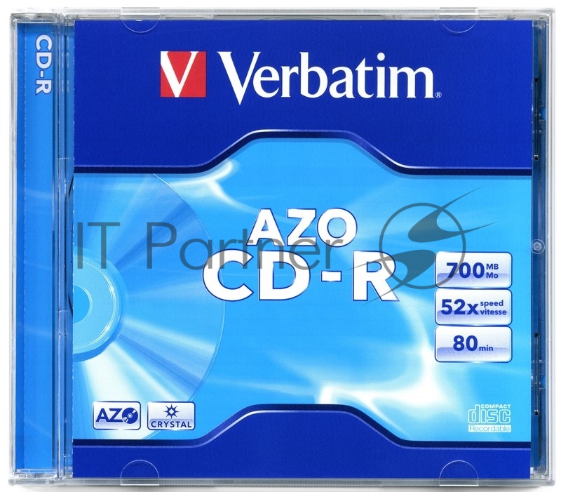 Диск CD-R Verbatim 700Mb 52x, 1 шт., AZO Crystal, Jewel Case (43326)