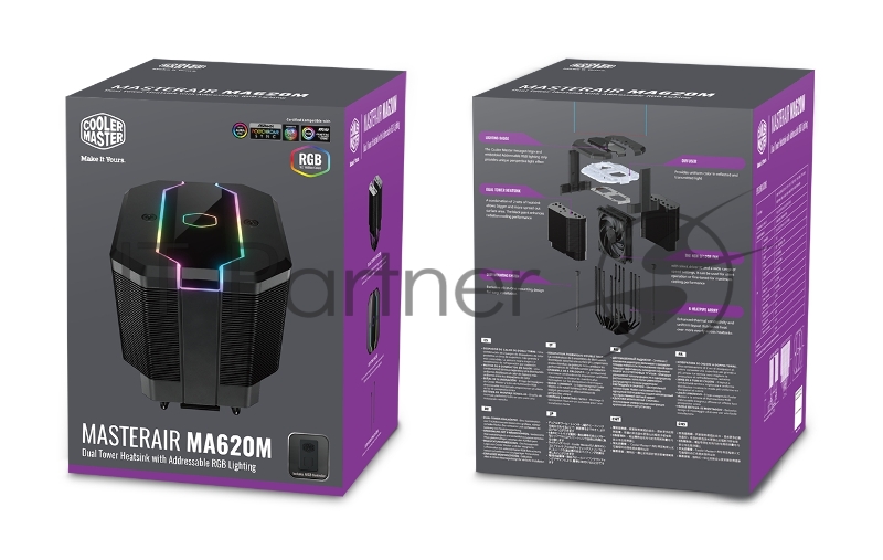 Кулер для процессора Cooler Master CPU Cooler MasterAir MA620M, 650-2000 RPM, 200W, ARGB LED fan, ARGB LED controller, Full Socket Support