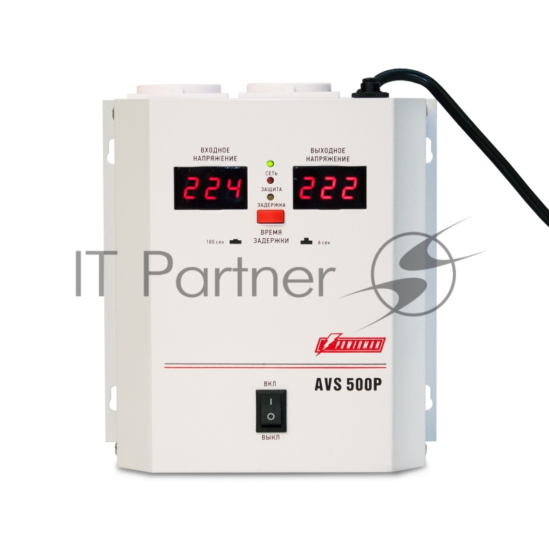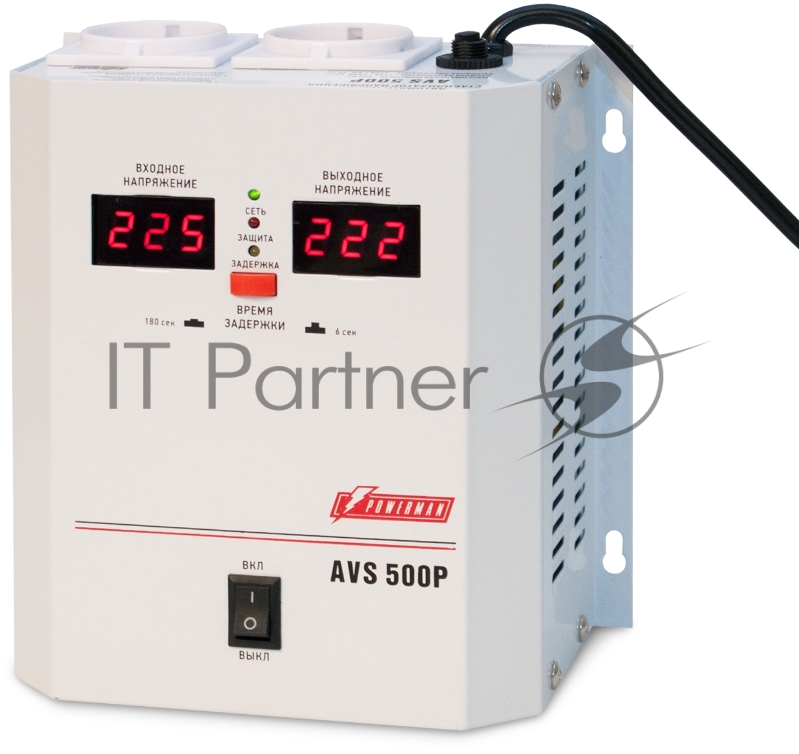 Стабилизатор напряжения Powerman AVS-500P (220В±8% 500ВА,5А,КПД 98%, циф. индикация вх./вых.)