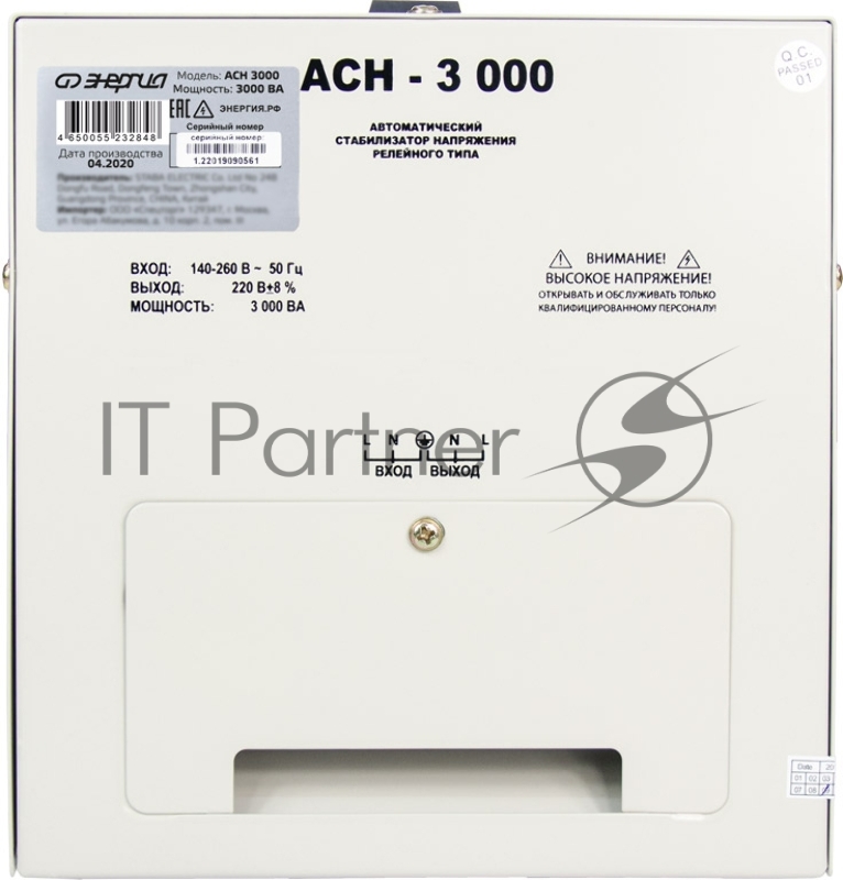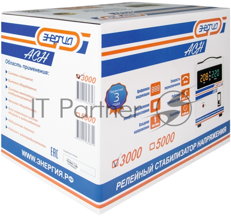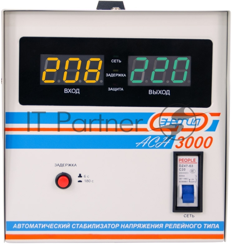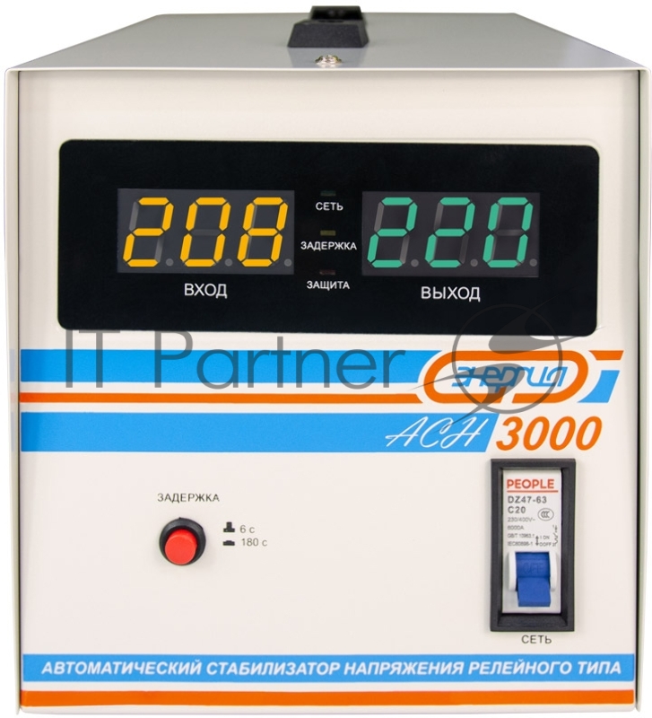 Cтабилизатор ЭНЕРГИЯ АСН-3000 с цифр. дисплеем 3000 ВА Напряжение входа (рабочее) В 140-260 13.6 A