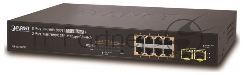 Управляемый коммутатор Planet IPv4/IPv6, 8-Port Managed 802.3at POE+ Gigabit Ethernet Switch + 2-Port 100/1000X SFP (120W)