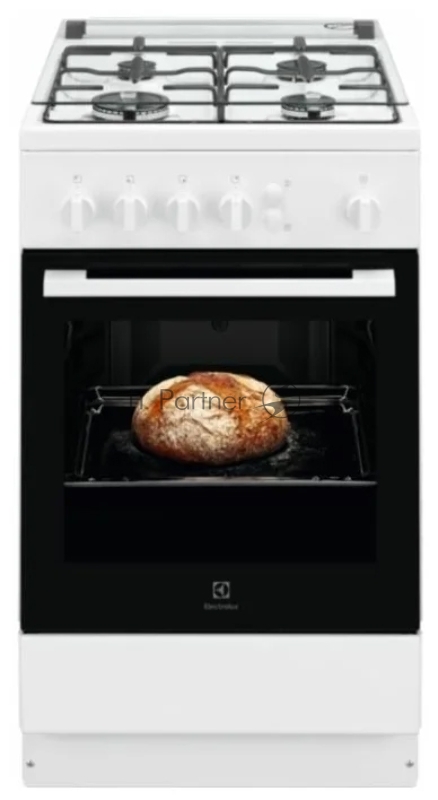 Газовые плиты ELECTROLUX/ Газовая плита с газовой духовкой, 50см шириной, белого цвета, газовая духовка, 1 режим, держатели для посуды с напылением под чугун, газконтроль варочной поверхности, автоподжиг варочной поверхности, автоподжиг духовки, газ
