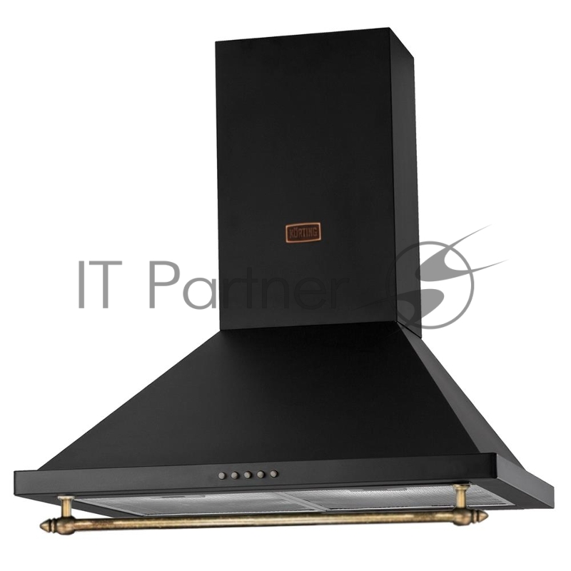 Вытяжка купольная Korting KHC 6750 RN / 60 см, черный, цает кнопок - бронза, Мощность: 750 м3/ч, Уровень шума: 54 дБ, 3 режима, Механическое управление, Алюминиевые жировые фильтры, 2 галогеновые лампы освещения: 2*20 Вт