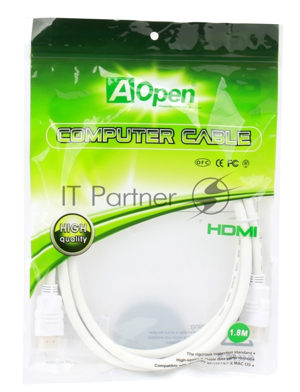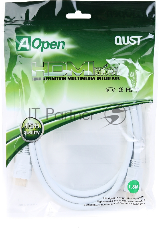 Кабель HDMI v.1.4 1.8м AOpen/Qust 3D/Ethernet, белый, позолоченные контакты, ACG511W-1.8M