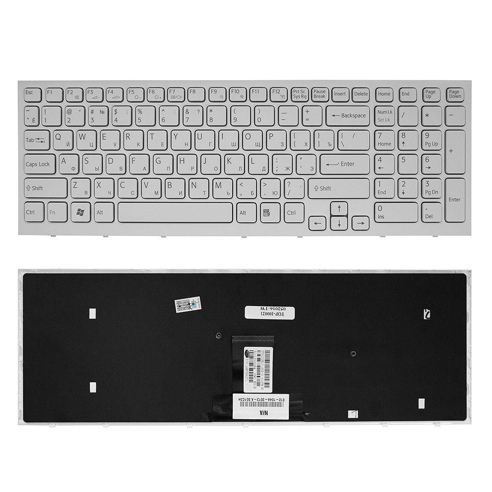 Клавиатура для ноутбука Sony Vaio VPC-EB Series. Плоский Enter. Белая, с белой рамкой. 148792871, V111678A.