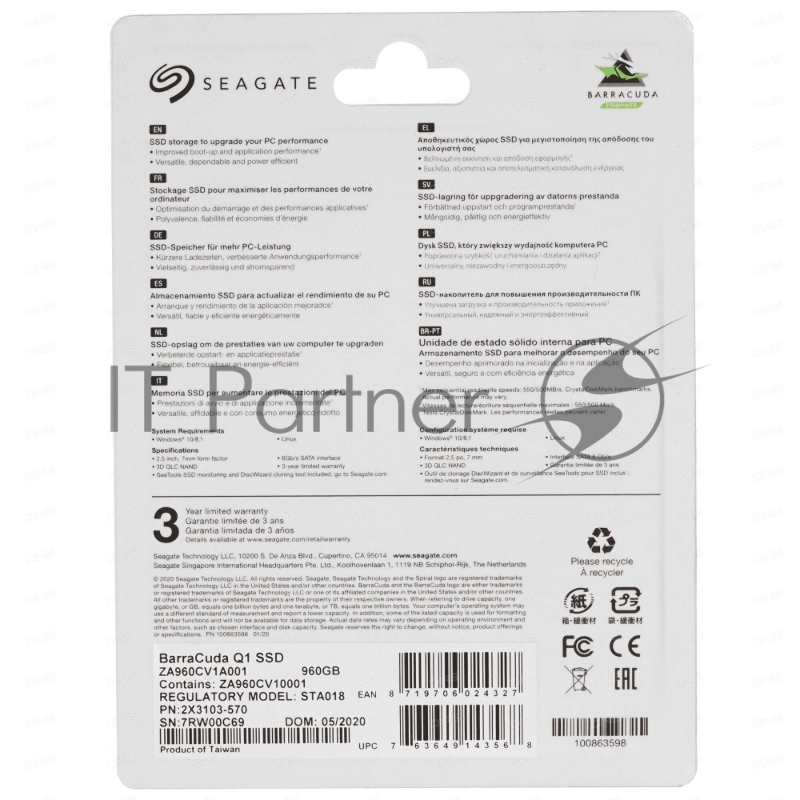 Накопитель SSD Seagate BarraCuda 960GB SATA2.5 QLC 6GB/S ZA960CV1A001