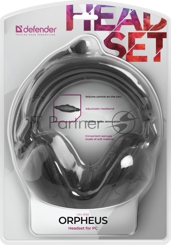 Гарнитура стерео Defender Orpheus HN-898 /накладные/ Ø40 мм/ 2x3.5 mm стерео/ микрофон / каб. 3м / черный.