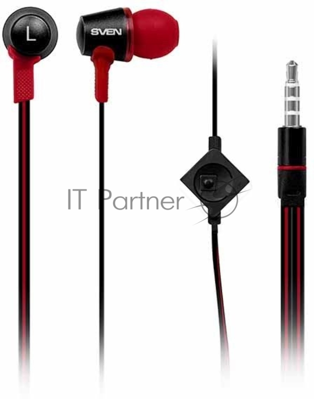 Внутриканальные стереонаушники с микрофоном SVEN E-190M, черный-красный Внутриканальные стереонаушники с микрофоном SVEN E-190M, черный-красный