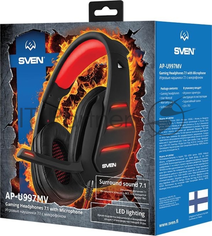 Игровые наушники SVEN AP-U997MV с микрофоном черно-красные (USB, LED, 7.1)