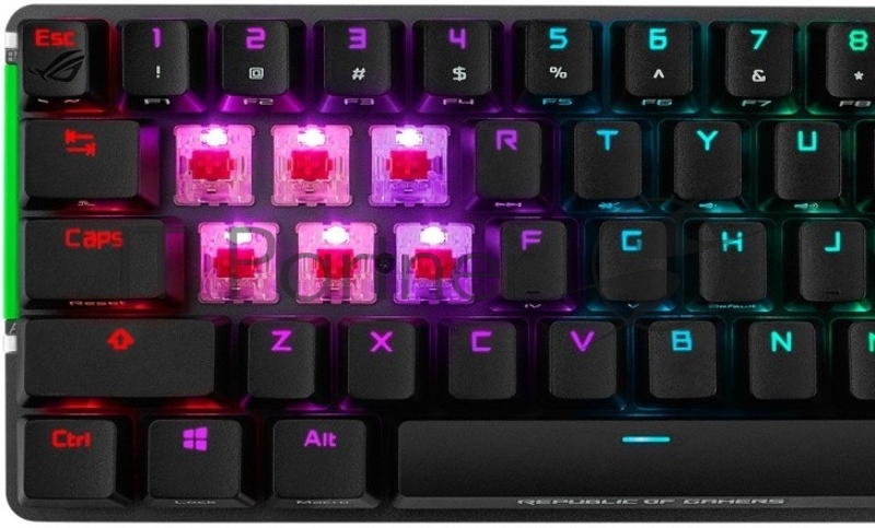 Игровая клавиатура ASUS ROG Falchion беспроводная (2.4 ГГц/USB 2.0 Type C, touch panel, 68 кл, Cherry MX RGB switches, аллюминивая рама, USB, RGB подсветка, 4000 мАч, 90MP01Y0-BKRA01)
