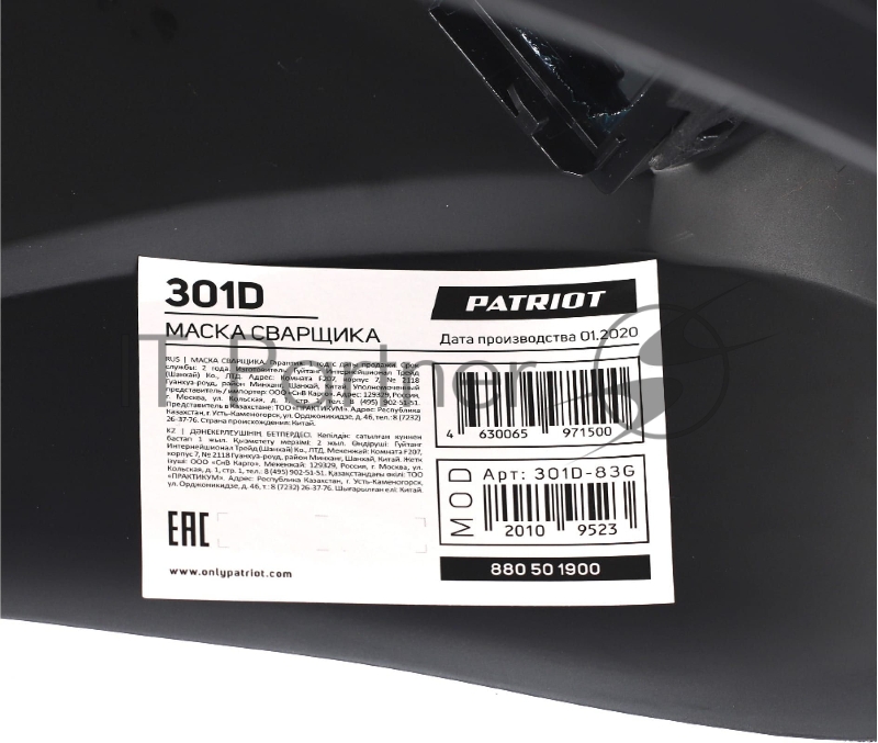 Маска сварщика Patriot 301D в индивидуальной упаковке