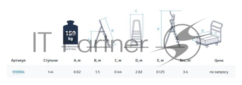 Стремянка Новая Высота NV1110 односторонняя алюминий 4ступ. (1110104)