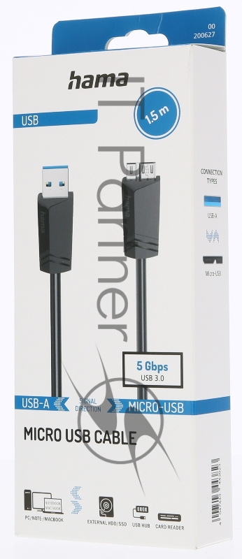 Кабель Hama H-200627 00200627 USB 3.0 (m)-micro USB (m) 1.5м черный