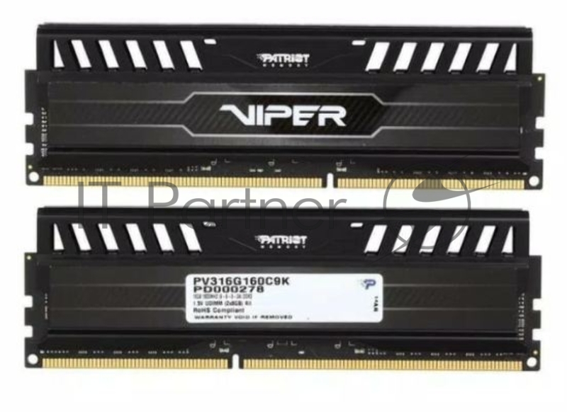 Модуль памяти Patriot DIMM DDR3 VIPER3 16Gb KIT (8GbX2) 1600MHz CL9 [PV316G160C9K] Black