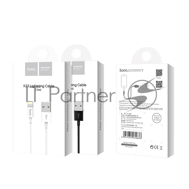 Кабель USB 2.0 hoco X23, AM/Lightning M, белый, 1м