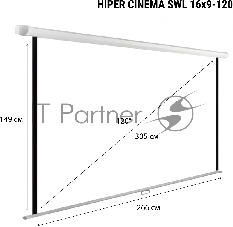 Экран Hiper 149x266см SWL 16x9-120 16:9 настенно-потолочный рулонный