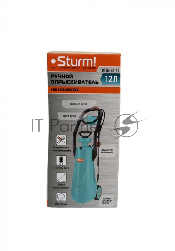 Опрыскиватель Sturm! 3016-22-12 12л с ручн насос, шланг, на колесах, с кейсом для мелочей