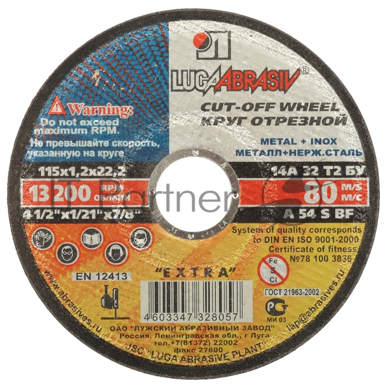 Круг отрезной абразивный Луга по металлу для УШМ, 115х1,2х22,2мм [3612-115-1,2]
