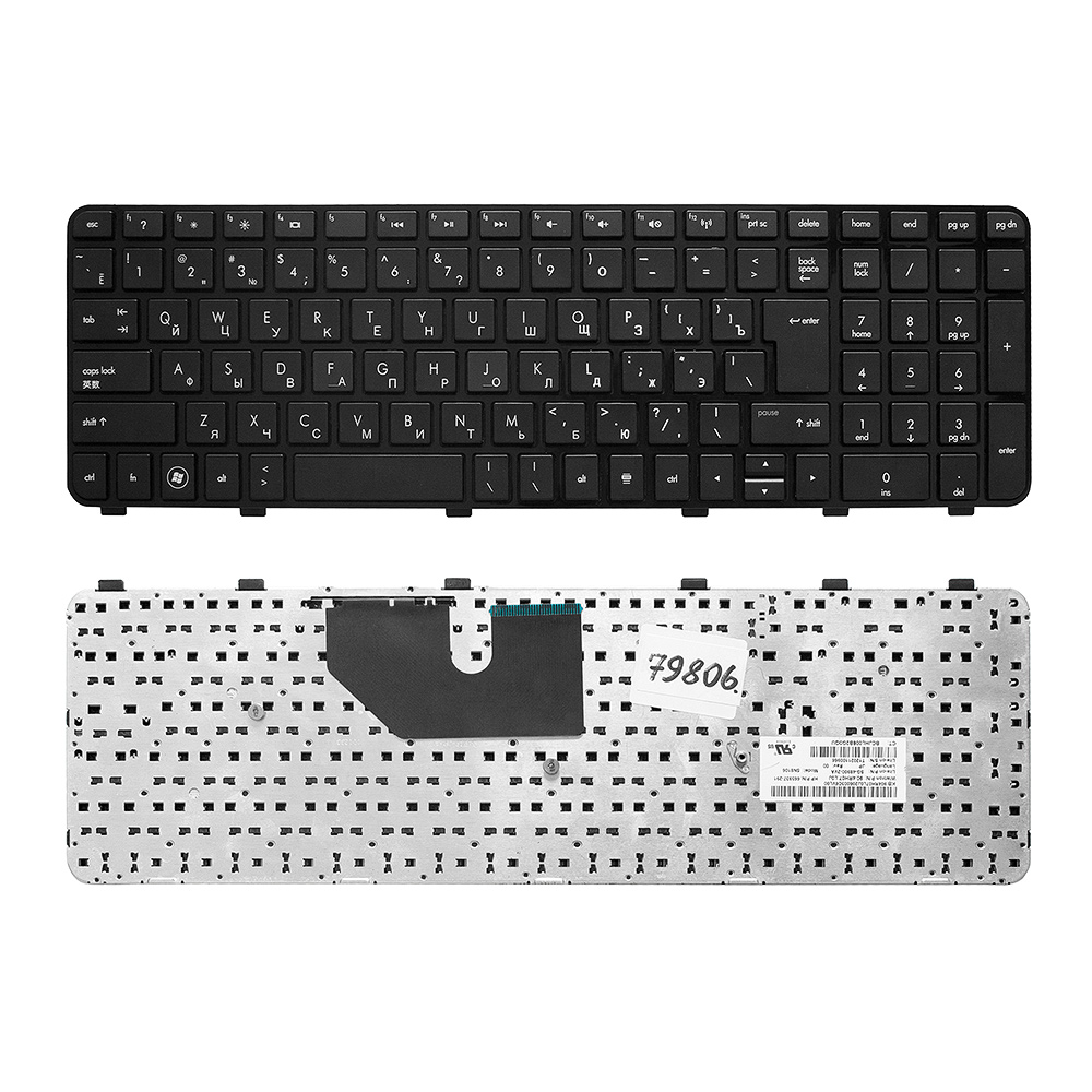 Клавиатура для ноутбука HP Pavilion DV6-6000, DV6-6100, DV6-6200 Series. Г-образный Enter. Черная, с черной рамкой. 633890-001, 9Z.N6DUS.001.