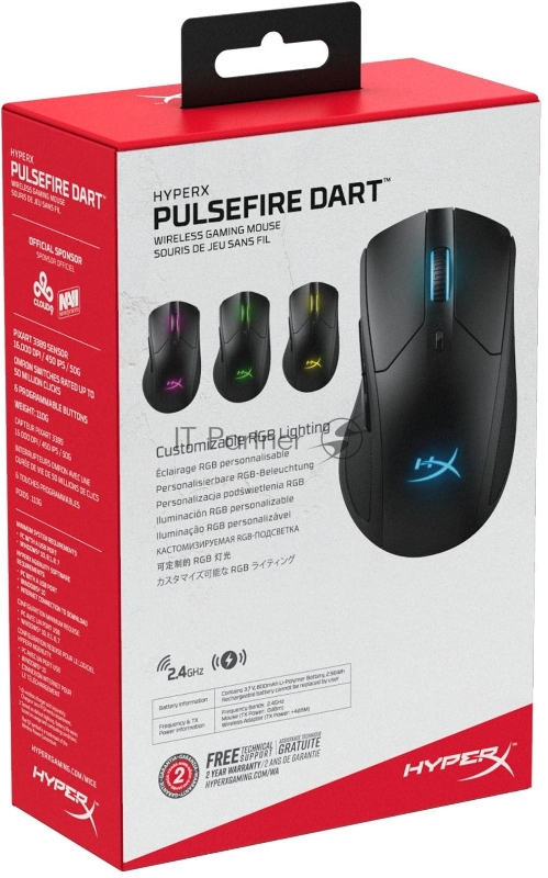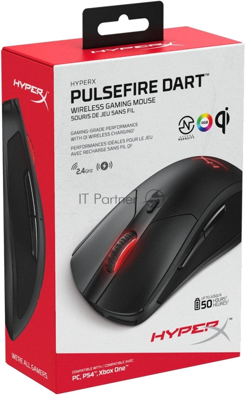 Мышь HyperX Pulsefire Dart черный оптическая (16000dpi) silent беспроводная USB2.0 (6but)