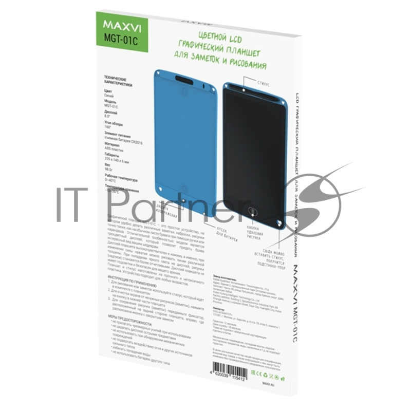 Планшет LCD для заметок и рисования Maxvi MGT-01С blue
