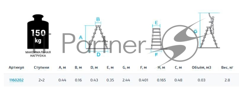Стремянка Новая Высота NV1160 двусторонняя алюминий 2ступ. (1160202)