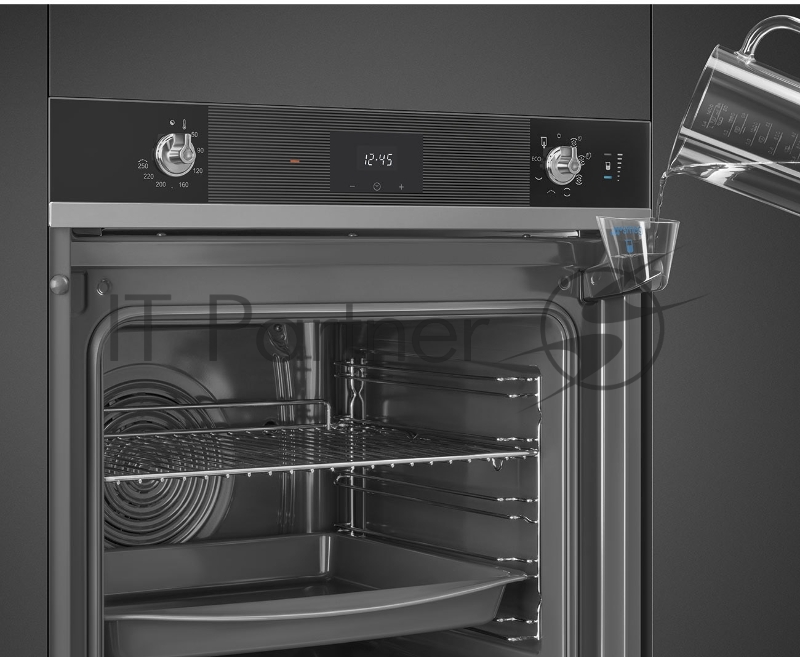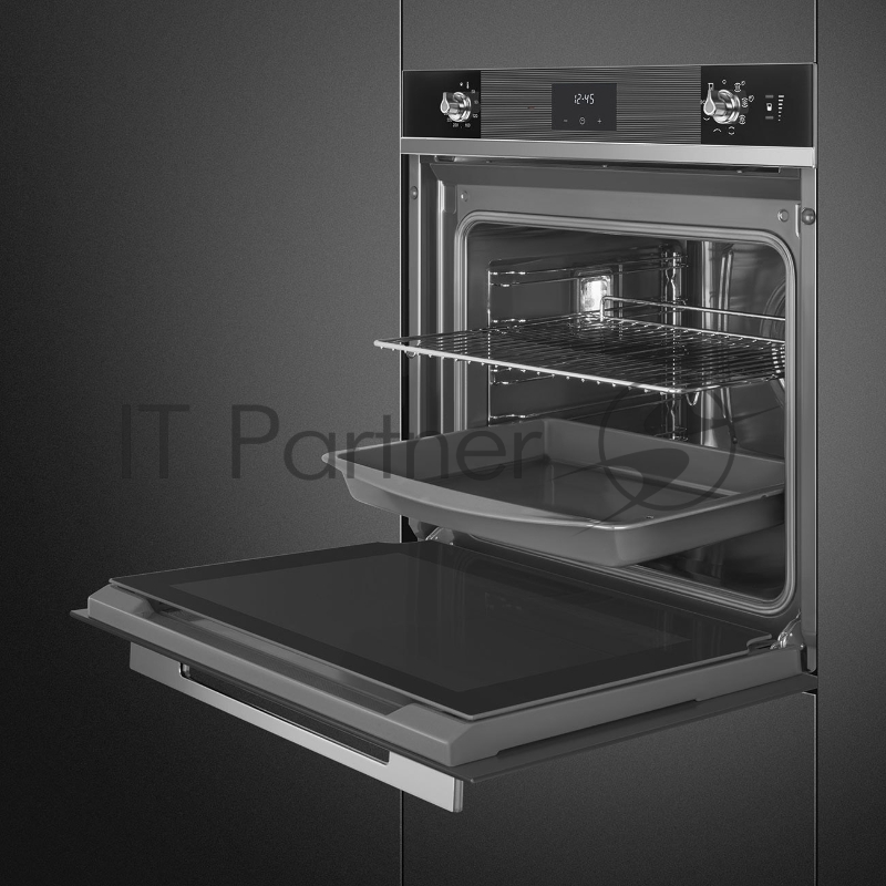 Встраиваемая электрическая духовка SMEG Linea, Многофункциональный духовой шкаф с пароувлажнением, 60 см, 6 функций, чёрное стекло
