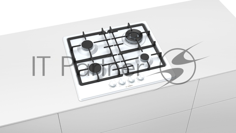 Газовая варочная панель 60 см, Serie 4, 4 конфорки, газ-контроль, белый цвет