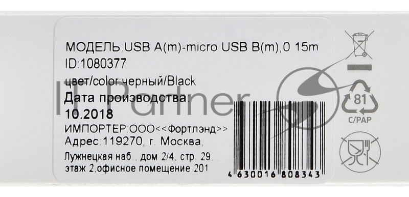 Кабель Digma USB A (m) micro USB B (m) 0.15м черный