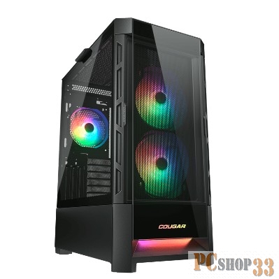 Корпус Cougar Duoface RGB, 2х140мм + 1x120mm ARGB Fan, ARGB Fan Hub, без БП, черный, ATX