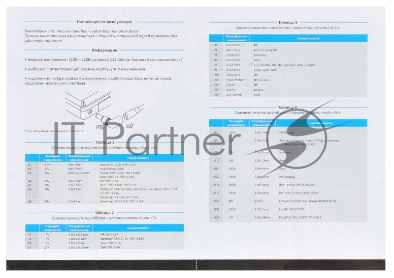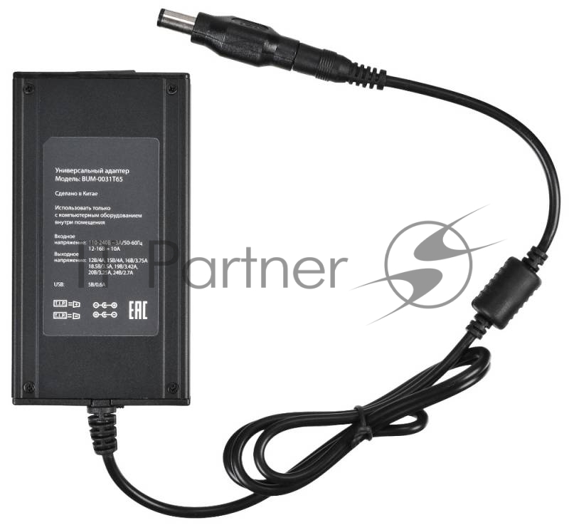 Описание: Универсальный адаптер для ноутбуков мощностью 65 ватт и USB-портом для зарядки мобильных телефонов и планшетов. В комплекте входят 8 сменных штекеров, подходящих к большинству ноутбуков. Выбор мощности для питания происходит в ручном режиме.
