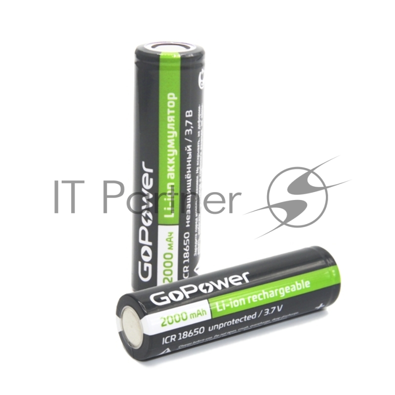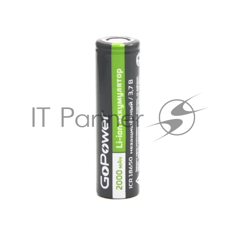 Аккумулятор Li-ion GoPower ICR18650 PC1 3.7V 2000mAh без защиты плос.конт. (1/80/160)