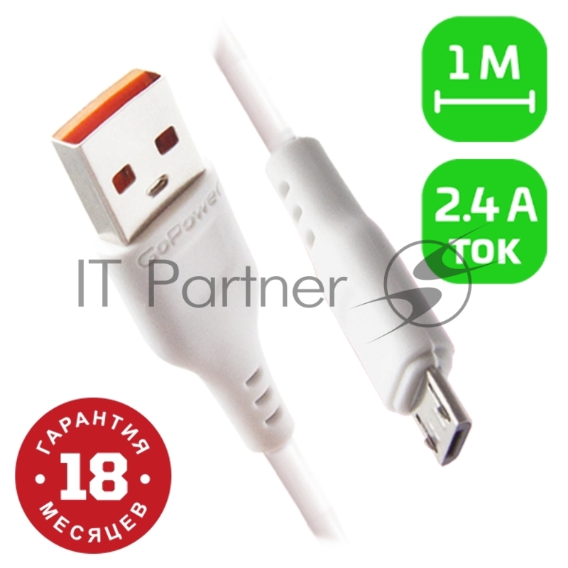 Кабель GoPower GP01M USB (m)-microUSB (m) 1.0м 2.4A ПВХ белый (1/800)