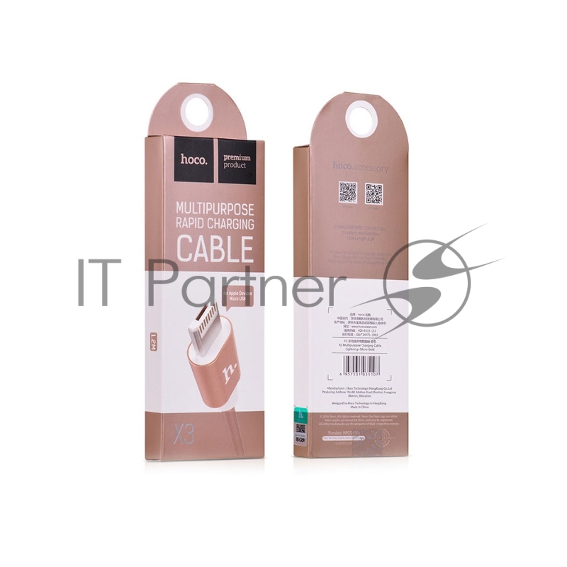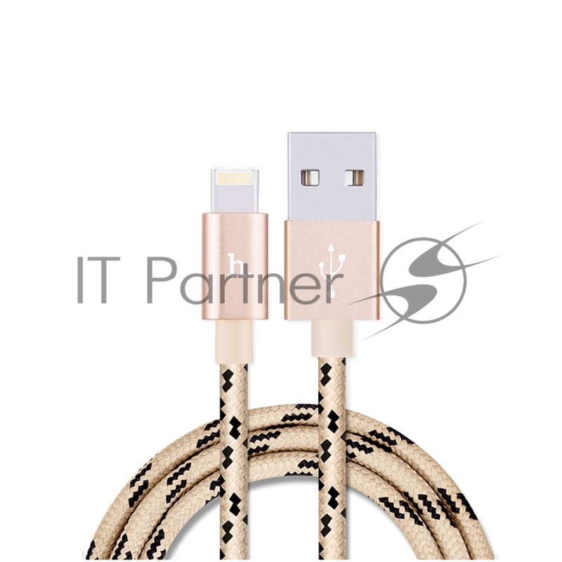 Кабель USB 2.0 hoco X2 текстильная оплетка, AM/Lightning M, золотой, 1м