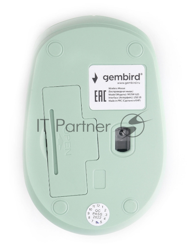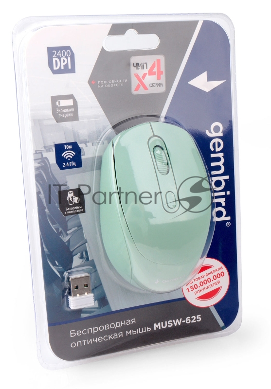 Мышь беспроводная Gembird MUSW-625-1, 2.4ГГц, 2400 DPI, 4кн., зелёный