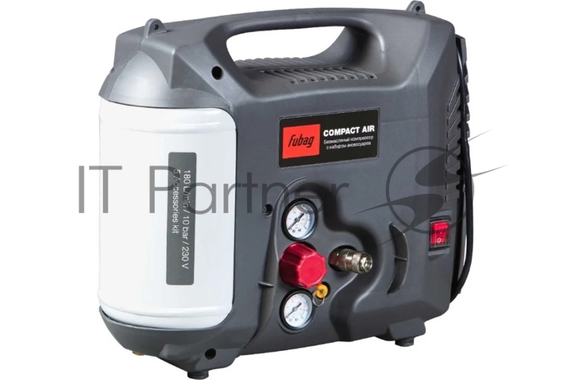 Компрессор FUBAG COMPACT AIR [6412320] ( Ресивер 5 л, Произв-сть 180 л/мин, Давление 10 бар, Мощность 1300 Вт, Напряжение 230/50 В/Гц, Вес 8.4 кг )