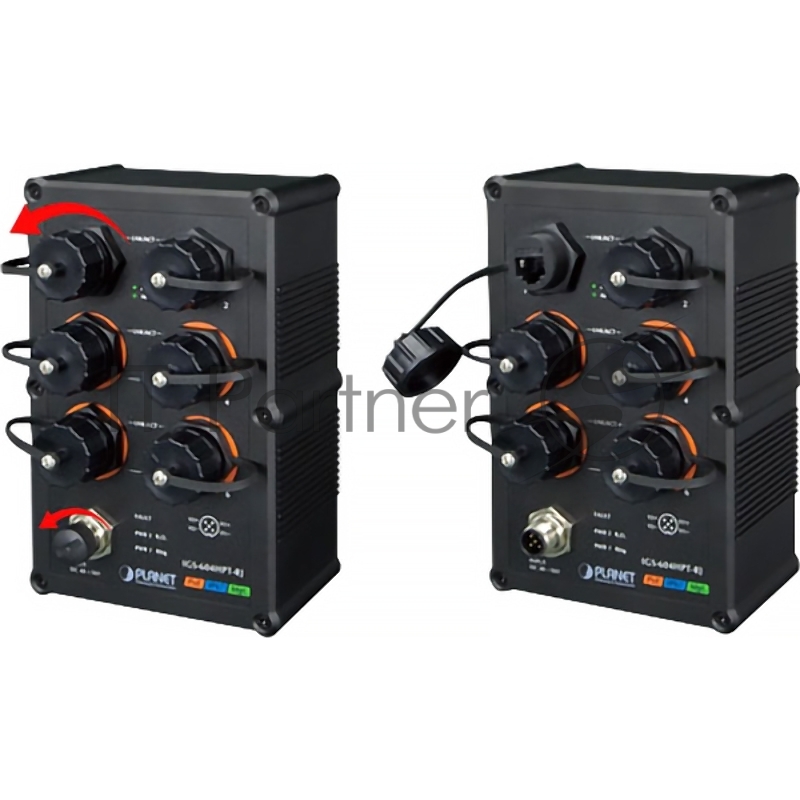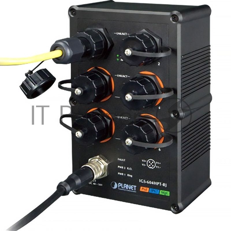 Коммутатор PLANET IP67-rated Industrial L2+ 4-Port 10/100/1000T 802.3at PoE + 2-Port 10/100/1000T Managed Ethernet Switch(-40~75 degrees C), ERPS Ring, 1588, 6 x waterproof RJ45 connectors included