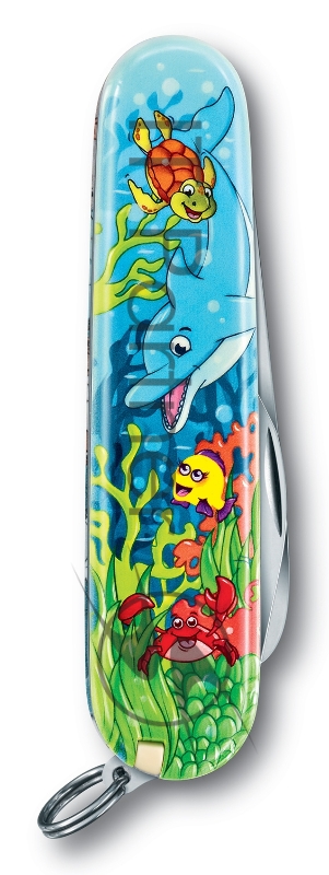 Нож перочинный Victorinox My First Victorinox Dolphin Edition (0.2373.E1) 84мм 9функций голубой/рисунок карт.коробка