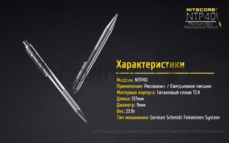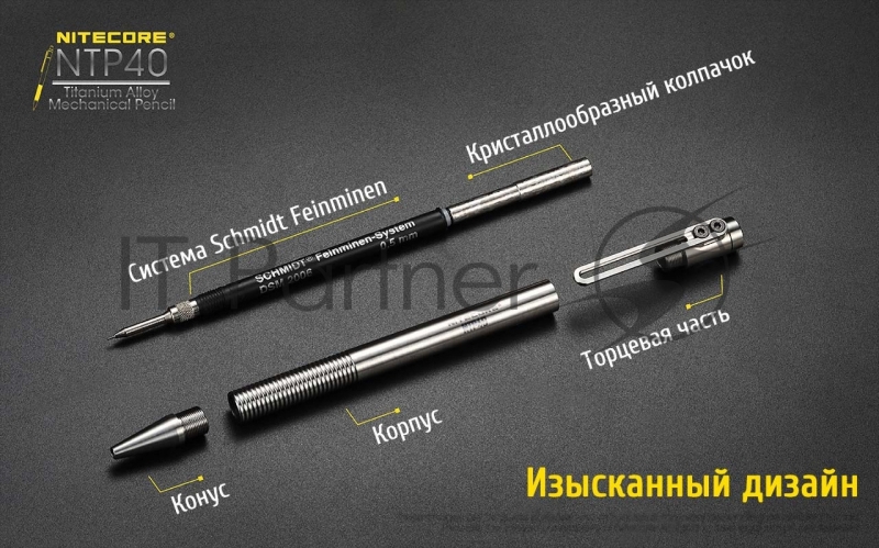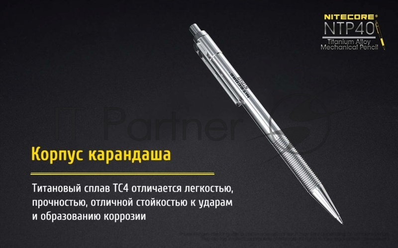 Карандаш тактический Nitecore NTP40 (18488) серебристый титан подар.кор.