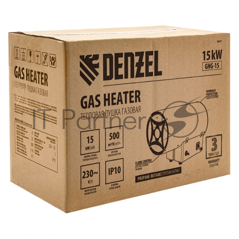 Газовая тепловая пушка GHG-15, 15 кВт, 500 м3/ч, пропан-бутан// Denzel