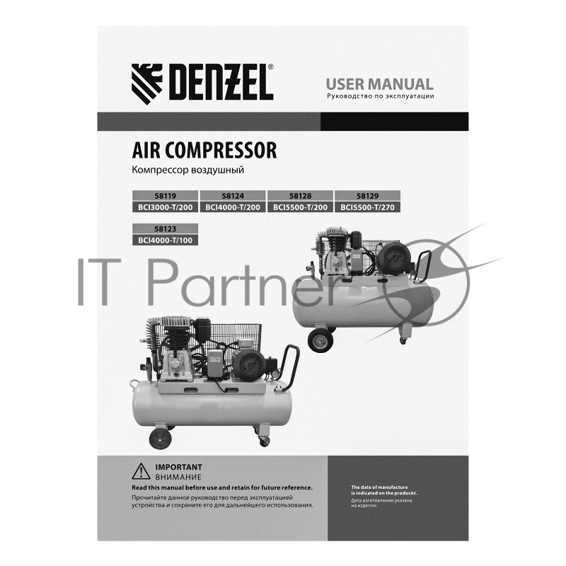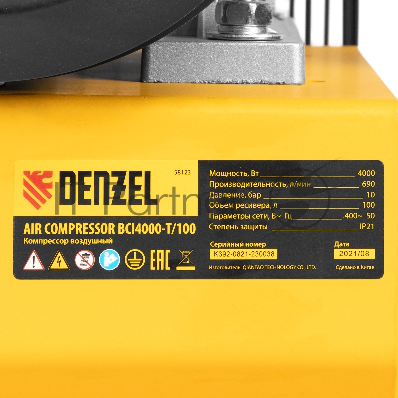 Компрессор воздушный рем. привод BCI4000-T/100, 4,0 кВт, 100 литров, 690 л/мин// Denzel
