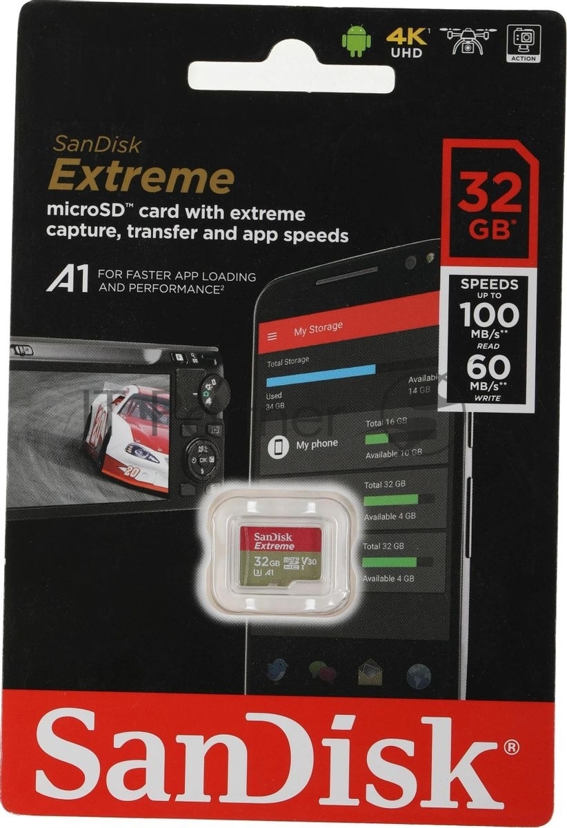 Флеш карта microSD 64GB SanDisk microSDXC Class 10 UHS-I A1 C10 V30 U3 Extreme 100MB/s