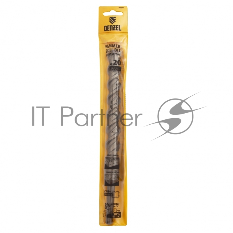 Бур по бетону, двойная спираль, Cobalt W-tip, 20x260 мм, SDS PLUS// Denzel