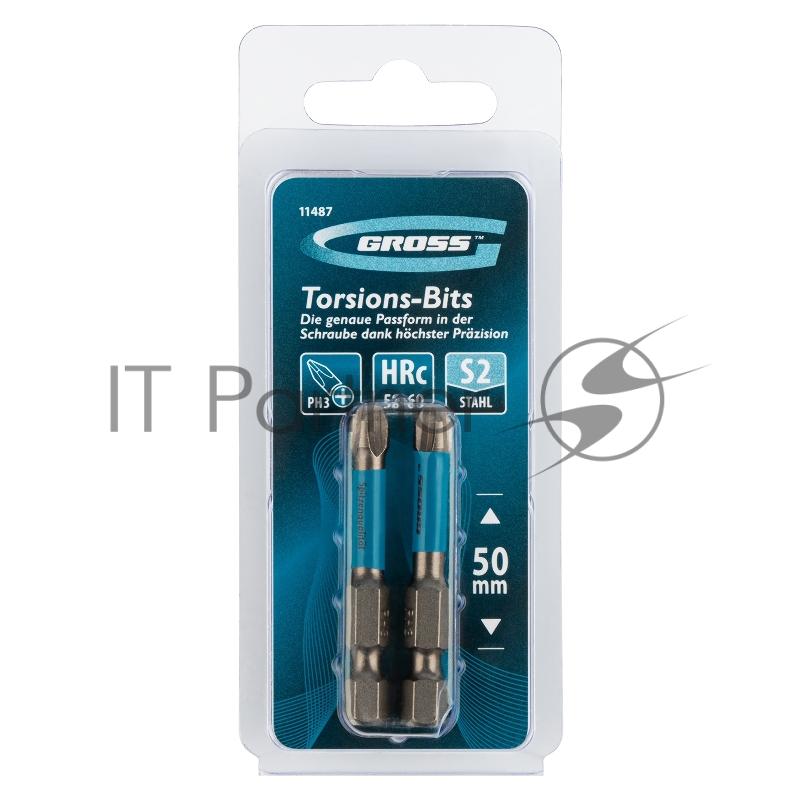 Набор бит торсионных PH3x50 мм, для ударных шуруповертов, 2 шт.// Gross