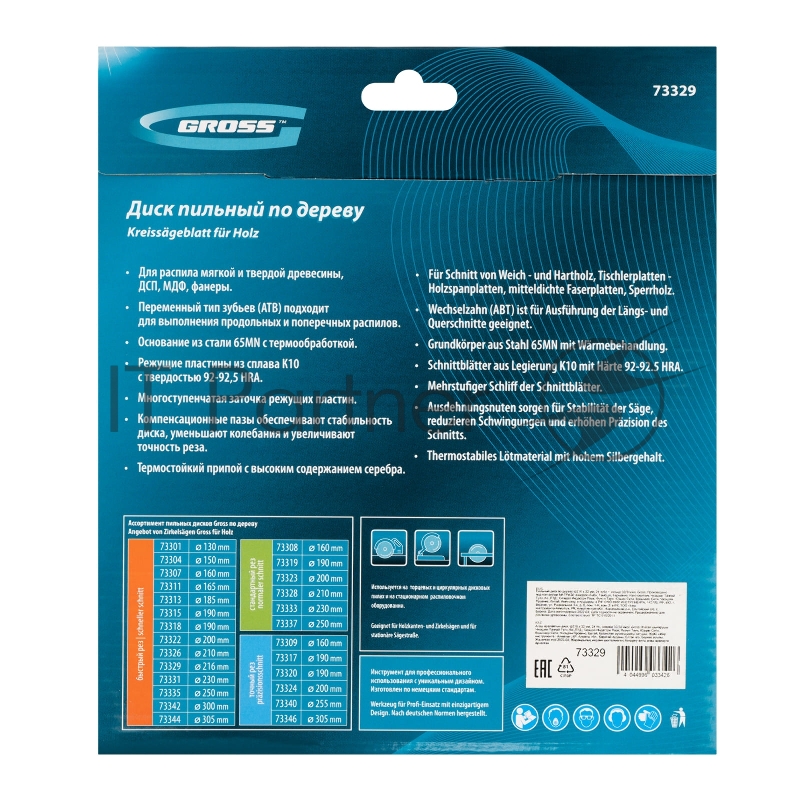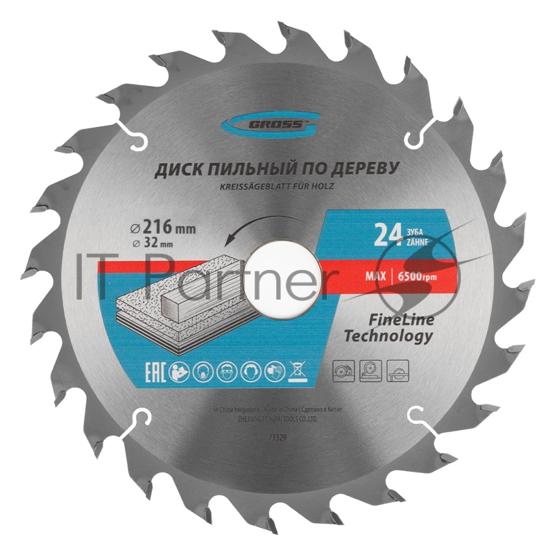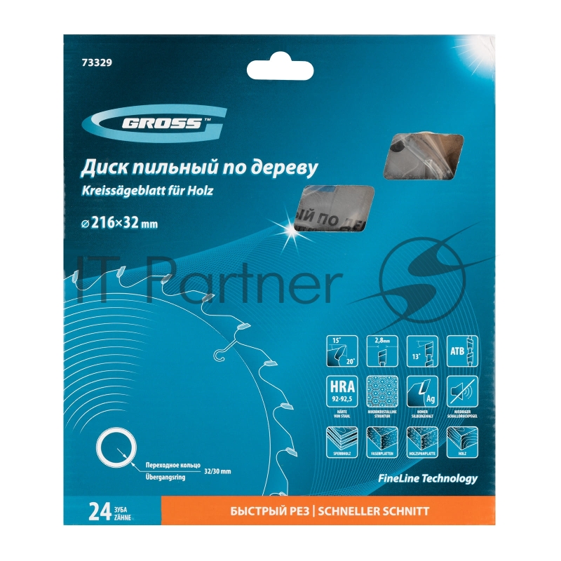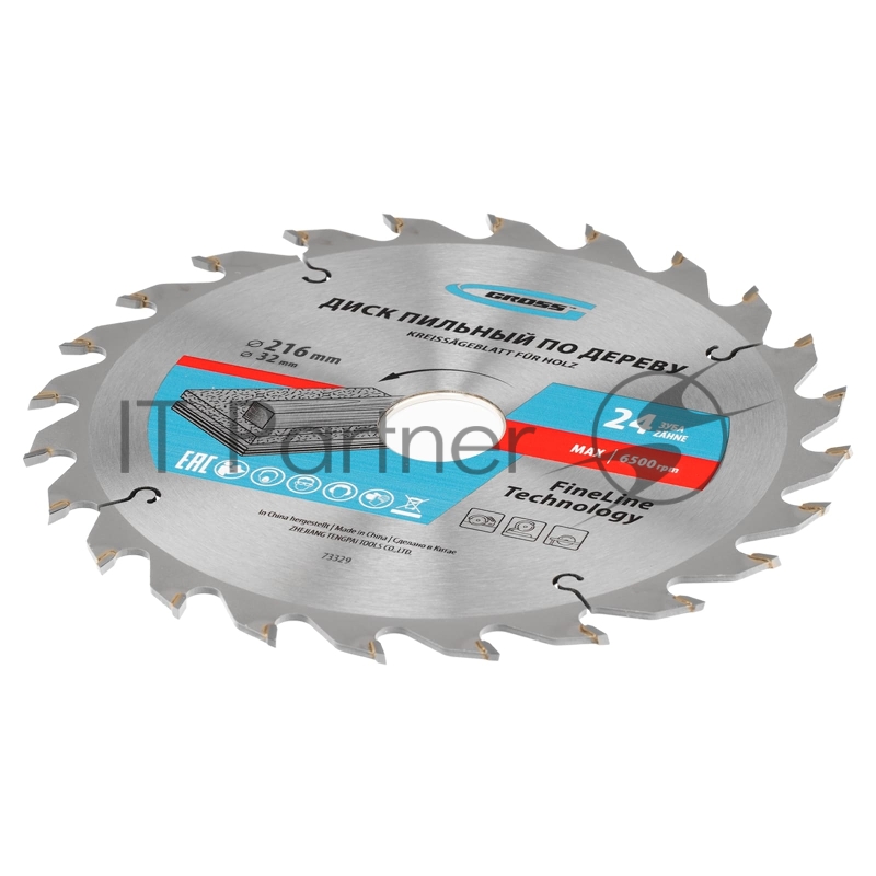 Пильный диск по дереву ф216 х 32 мм, 24 зуба + кольцо 32/30мм// Gross